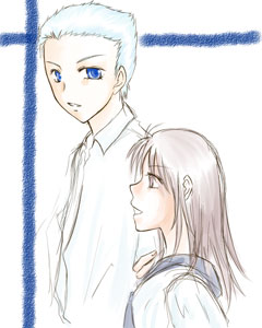来月TOP絵予定だった二人の似非ラブ絵が暑中見舞いとしてのみの登場です(苦笑)